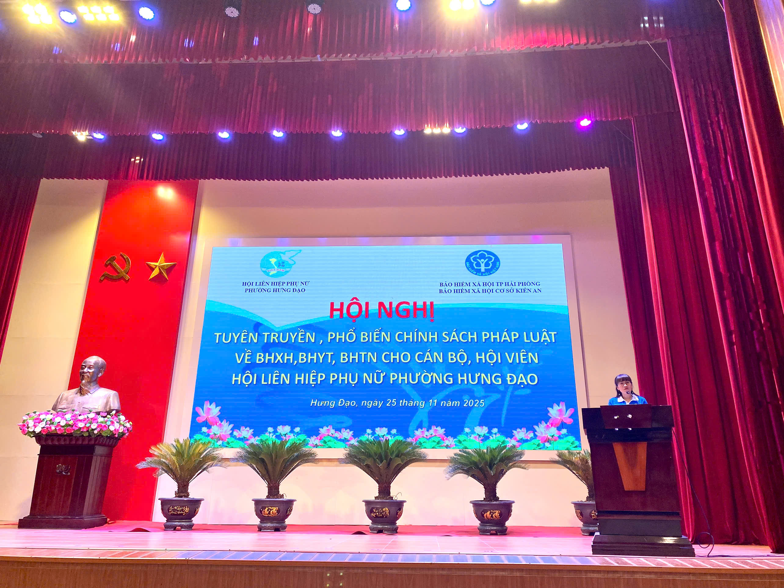 Thực hiện Kế hoạch Đợt thi đua đặc biệt trong câc cấp Hội LHPN thành phố, ngày 25/ 11/2025, Hội Liên hiệp Phụ nữ phường Hưng Đạo phối hợp với Hội LHPN thành phố và Bảo hiểm xã hội cơ sở Kiến An tổ chức Hội nghị tập huấn, tuyên truyền về chuyển đổi số, nâng cao kiến thức, năng lực, kỹ năng hỗ trợ phụ nữ khởi nghiệp, phát triển kinh tế tư nhân; tuyên truyền, phổ biến chính sách BHXH tự nguyện, BHYT hộ gia đình.