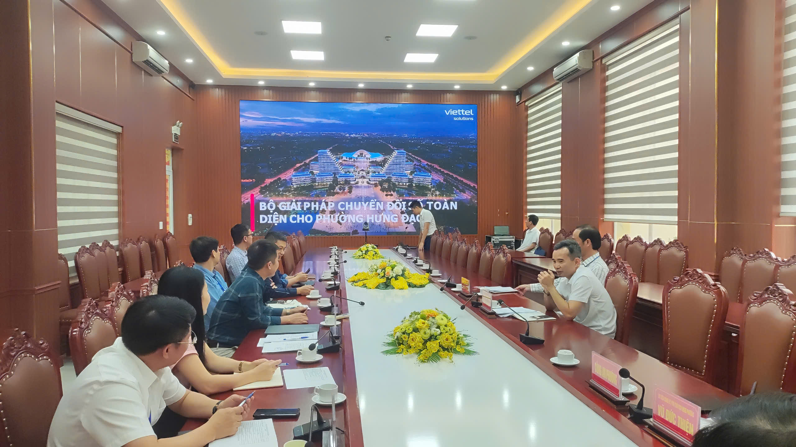 Chiều ngày 02/4/2026, UBND phường tổ chức buổi làm việc với Viettel Hải Phòng về tư vấn giải pháp chuyển đổi số toàn diện cho phường. Tại buổi làm việc, đại diện Viettel Hải Phòng đã trình bày một số mô hình chuyển đổi số cụ thể gắn với chức năng, nhiệm vụ của từng phòng ban đơn vị và nhu cầu thực tế của phường.